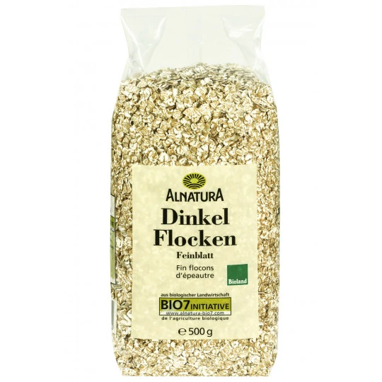 - die Dinkelkörner werden gedämpft und zu Flocken gewalzt; enthalten alle Bestandteile des ganzen Korns